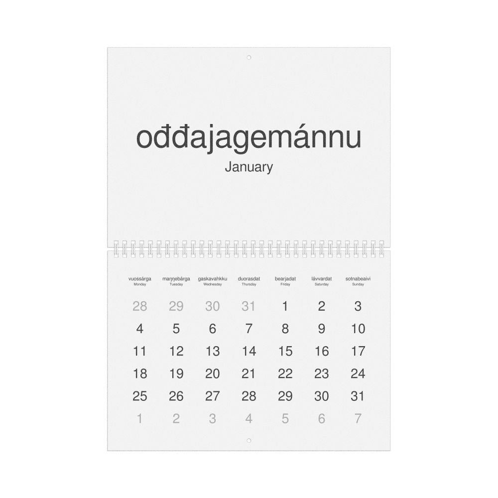 2026 Wall Calendar, Northern Sámi-Labeled, Sunday-Start Layout, Poster / Wall Print, 23.4 x 33.1 in (59.4 x 84.1 cm)