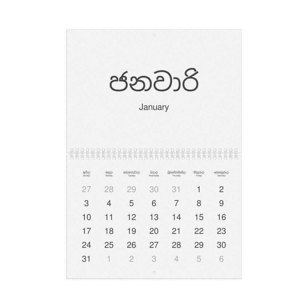 2027 Wall Calendar, Sinhala/English-Labeled, Monday-Start Layout, Wire-Bound, 11.7 x 8.3 in (29.7 x 21.0 cm)