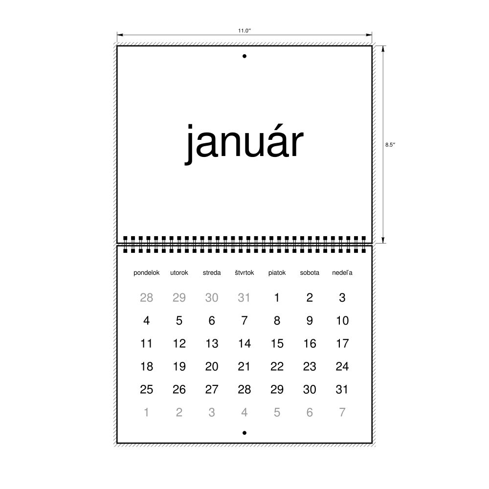 2027 Wall Calendar, Slovak-Labeled, Monday-Start Layout, Wire-Bound, 11 x 8.5 in (27.9 x 21.6 cm)