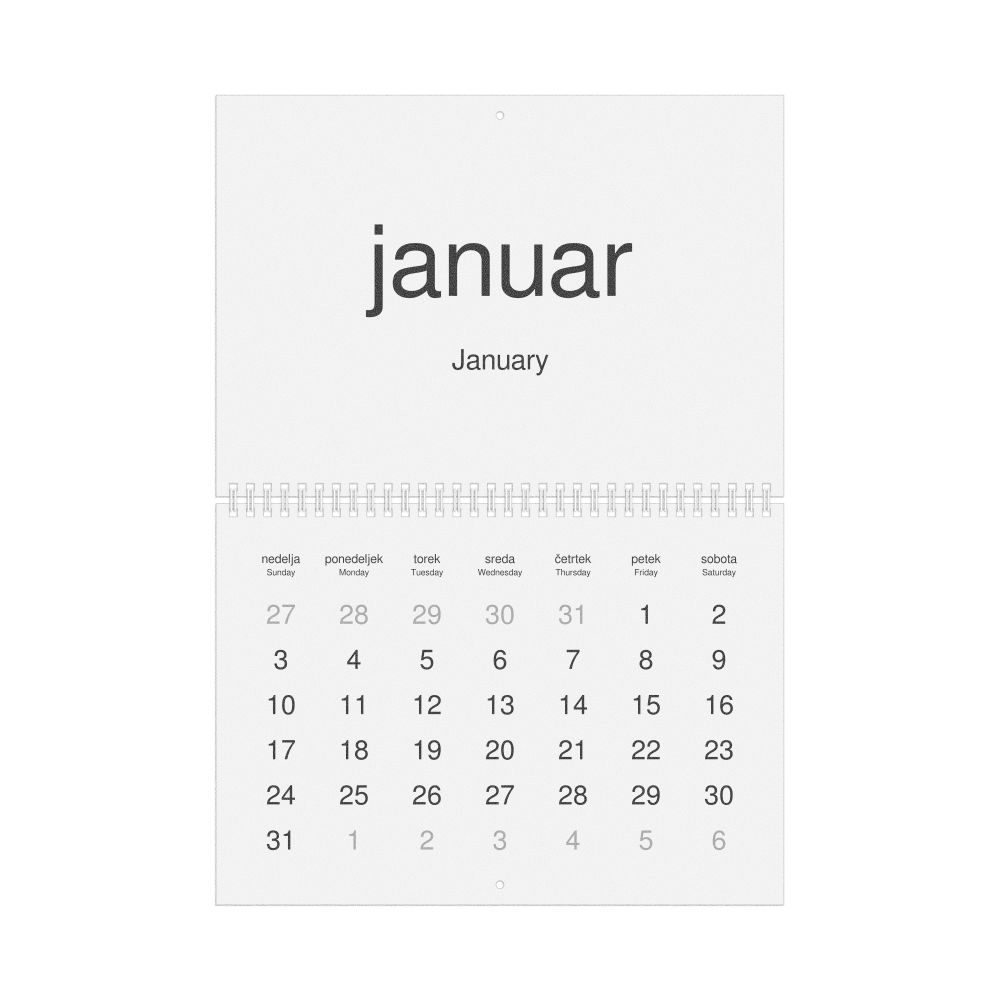 2027 Wall Calendar, Slovene-Labeled, Monday-Start Layout, Wire-Bound, 11.7 x 8.3 in (29.7 x 21.0 cm)