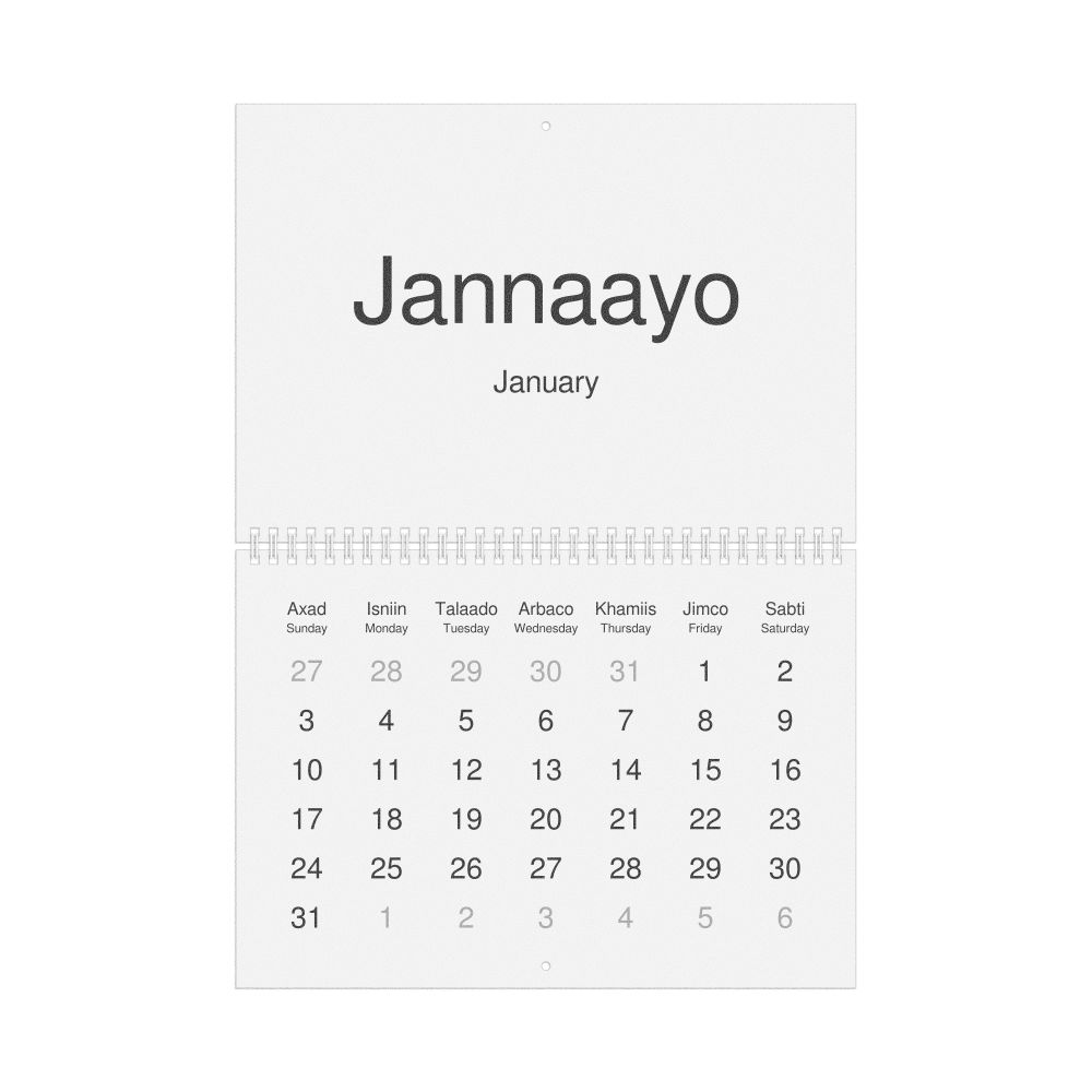 2026 Wall Calendar, Somali-Labeled, Sunday-Start Layout, Poster / Wall Print, 23.4 x 33.1 in (59.4 x 84.1 cm)