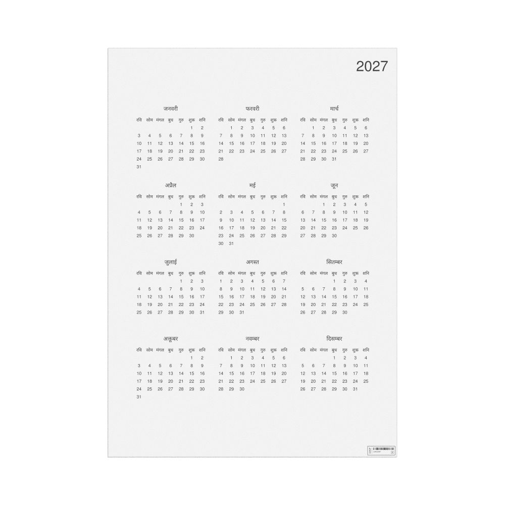 - Linguistics enthusiasts and polyglots - For "language geeks" interested in comparative linguistics or the mechanics of different languages and who value the aesthetic differences in scripts, orthography, and typography of different languages, the Sanskrit calendar serves as an object of intellectual interest. You can collect calendars for various languages to compare their linguistic roots (e.g., comparing Romance languages vs. Slavic languages). Leskoff's calendars are characterized by specific typographic choices that highlight the orthography and script unique to the target language. Think correct usage of diacritics, characters, and directional writing (left-to-right vs. right-to-left). The minimalist design focuses on legibility and aesthetic appeal of the script itself.