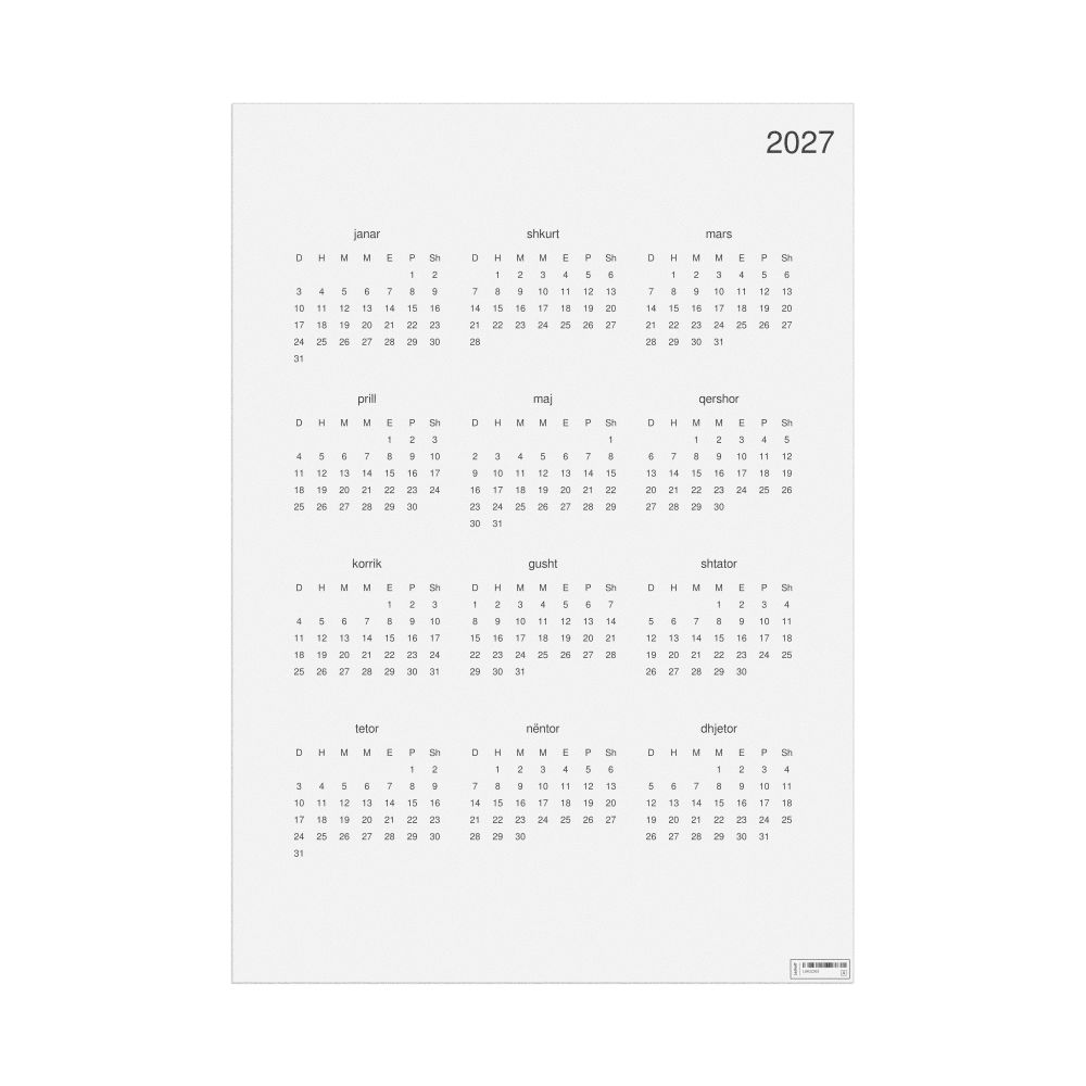 - Linguistics enthusiasts and polyglots - For "language geeks" interested in comparative linguistics or the mechanics of different languages and who value the aesthetic differences in scripts, orthography, and typography of different languages, the Albanian calendar serves as an object of intellectual interest. You can collect calendars for various languages to compare their linguistic roots (e.g., comparing Romance languages vs. Slavic languages). Leskoff's calendars are characterized by specific typographic choices that highlight the orthography and script unique to the target language. Think correct usage of diacritics, characters, and directional writing (left-to-right vs. right-to-left). The minimalist design focuses on legibility and aesthetic appeal of the script itself.