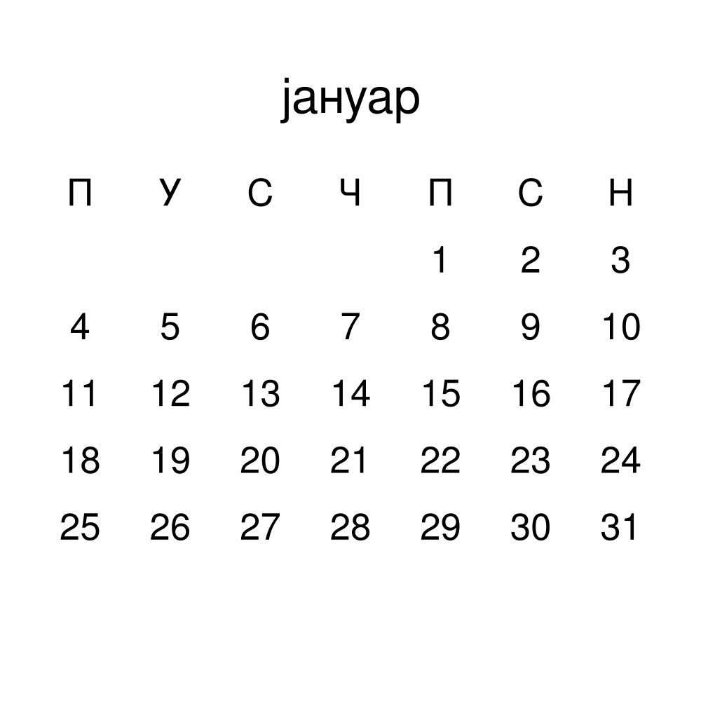 • Linguistics enthusiasts and polyglots - For "language geeks" interested in comparative linguistics or the mechanics of different languages and who value the aesthetic differences in scripts, orthography, and typography of different languages, the Serbian calendar serves as an object of intellectual interest. You can collect calendars for various languages to compare their linguistic roots (e.g., comparing Romance languages vs. Slavic languages). Leskoff's calendars are characterized by specific typographic choices that highlight the orthography and script unique to the target language. Think correct usage of diacritics, characters, and directional writing (left-to-right vs. right-to-left). The minimalist design focuses on legibility and aesthetic appeal of the script itself.