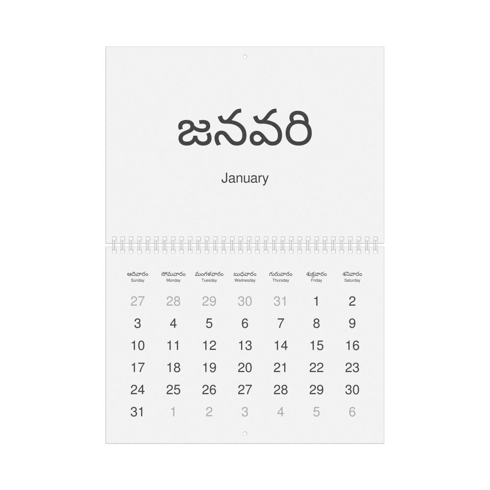 2027 Wall Calendar, Telugu-Labeled, Monday-Start Layout, Wire-Bound, 11.7 x 8.3 in (29.7 x 21.0 cm)