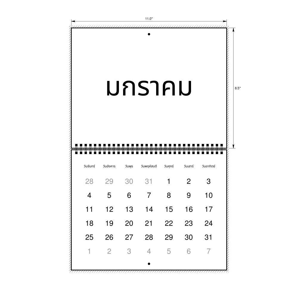 This calendar features the Thai names of months and days of the week on top of a standard Gregorian calendar layout. Beyond its utility for tracking dates, it serves as an educational tool, cultural touchstone (cultural artifact), and functional decor (aesthetic object).