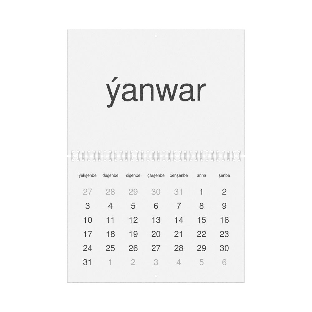 • Linguistics enthusiasts and polyglots - For "language geeks" interested in comparative linguistics or the mechanics of different languages and who value the aesthetic differences in scripts, orthography, and typography of different languages, the Turkmen calendar serves as an object of intellectual interest. You can collect calendars for various languages to compare their linguistic roots (e.g., comparing Romance languages vs. Slavic languages). Leskoff's calendars are characterized by specific typographic choices that highlight the orthography and script unique to the target language. Think correct usage of diacritics, characters, and directional writing (left-to-right vs. right-to-left). The minimalist design focuses on legibility and aesthetic appeal of the script itself.