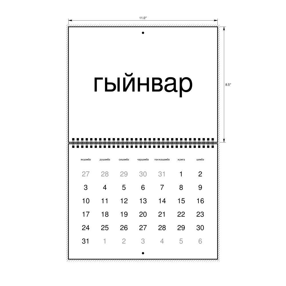 - Linguistics enthusiasts and polyglots - For "language geeks" interested in comparative linguistics or the mechanics of different languages and who value the aesthetic differences in scripts, orthography, and typography of different languages, the Tatar calendar serves as an object of intellectual interest. You can collect calendars for various languages to compare their linguistic roots (e.g., comparing Romance languages vs. Slavic languages). Leskoff's calendars are characterized by specific typographic choices that highlight the orthography and script unique to the target language. Think correct usage of diacritics, characters, and directional writing (left-to-right vs. right-to-left). The minimalist design focuses on legibility and aesthetic appeal of the script itself.