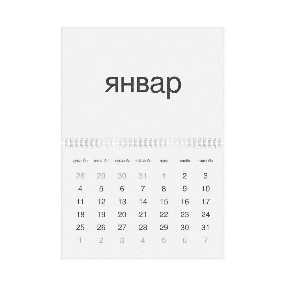 • Linguistics enthusiasts and polyglots - For "language geeks" interested in comparative linguistics or the mechanics of different languages and who value the aesthetic differences in scripts, orthography, and typography of different languages, the Uzbek calendar serves as an object of intellectual interest. You can collect calendars for various languages to compare their linguistic roots (e.g., comparing Romance languages vs. Slavic languages). Leskoff's calendars are characterized by specific typographic choices that highlight the orthography and script unique to the target language. Think correct usage of diacritics, characters, and directional writing (left-to-right vs. right-to-left). The minimalist design focuses on legibility and aesthetic appeal of the script itself.