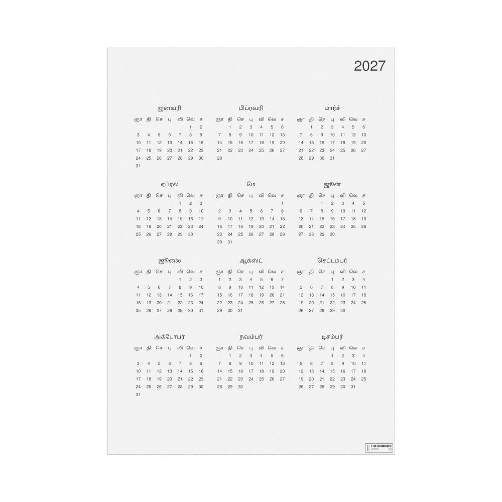 - Linguistics enthusiasts and polyglots - For "language geeks" interested in comparative linguistics or the mechanics of different languages and who value the aesthetic differences in scripts, orthography, and typography of different languages, the Tamil calendar serves as an object of intellectual interest. You can collect calendars for various languages to compare their linguistic roots (e.g., comparing Romance languages vs. Slavic languages). Leskoff's calendars are characterized by specific typographic choices that highlight the orthography and script unique to the target language. Think correct usage of diacritics, characters, and directional writing (left-to-right vs. right-to-left). The minimalist design focuses on legibility and aesthetic appeal of the script itself.