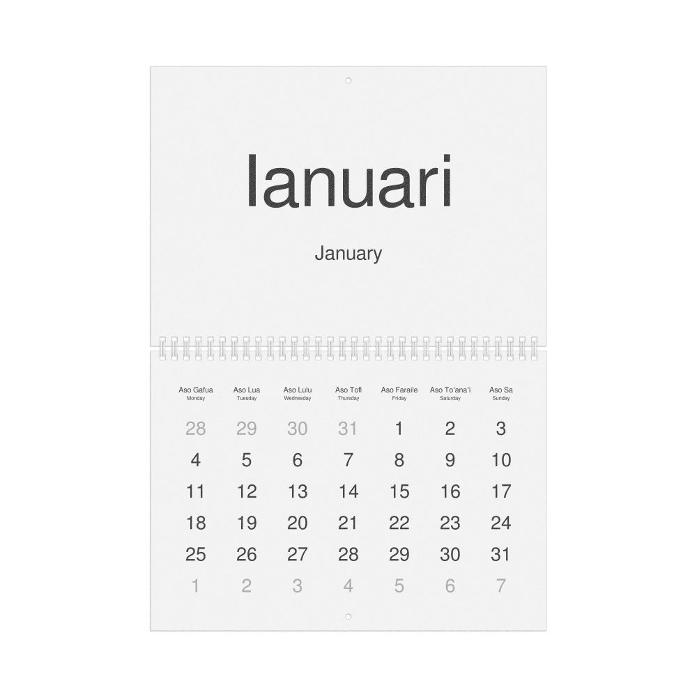 2026 Wall Calendar, Samoan-Labeled, Monday-Start Layout, Wire-Bound, 11.7 x 8.3 in (29.7 x 21.0 cm)