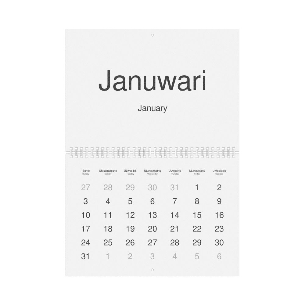 2026 Wall Calendar, Zulu/English-Labeled, Sunday-Start Layout, Wire-Bound, 11.7 x 8.3 in (29.7 x 21.0 cm)