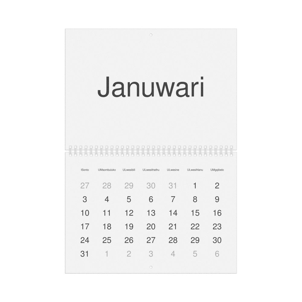 - Zulu heritage speakers and cultural connectors - For individuals seeking to maintain a connection to their history, ancestral roots, or the culture associated with the Zulu language, the calendar serves as a daily cultural marker. Use it in your home, office, library, or museum as a link to linguistic and cultural identity that integrates Zulu into your everyday life. Familiar language script and naming conventions may also provide a sense of home in a foreign environment.