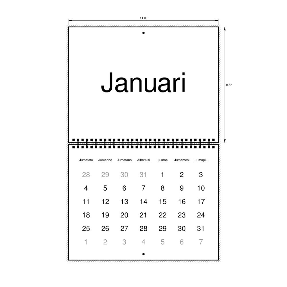 - Swahili heritage speakers and cultural connectors - For individuals seeking to maintain a connection to their history, ancestral roots, or the culture associated with the Swahili language, the calendar serves as a daily cultural marker. Use it in your home, office, library, or museum as a link to linguistic and cultural identity that integrates Swahili into your everyday life. Familiar language script and naming conventions may also provide a sense of home in a foreign environment.