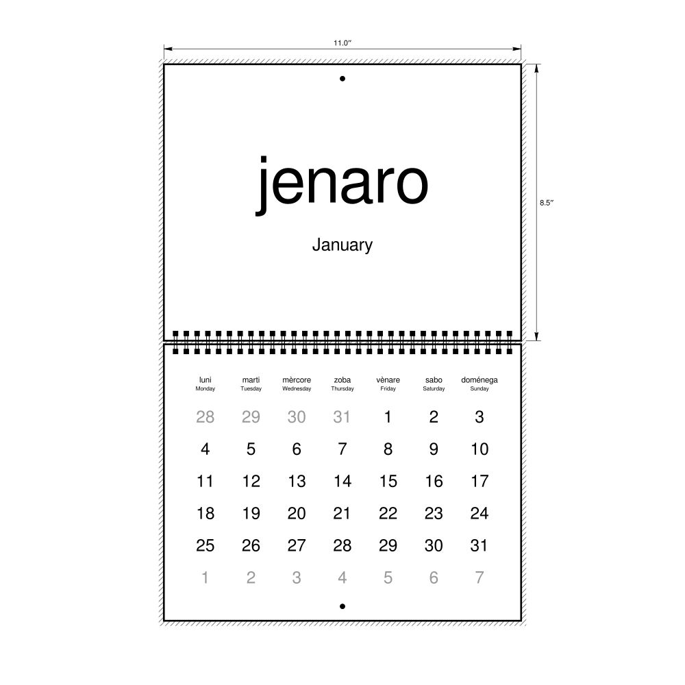 2027 Wall Calendar, Venetian/English-Labeled, Sunday-Start Layout, Wire-Bound, 11 x 8.5 in (27.9 x 21.6 cm)