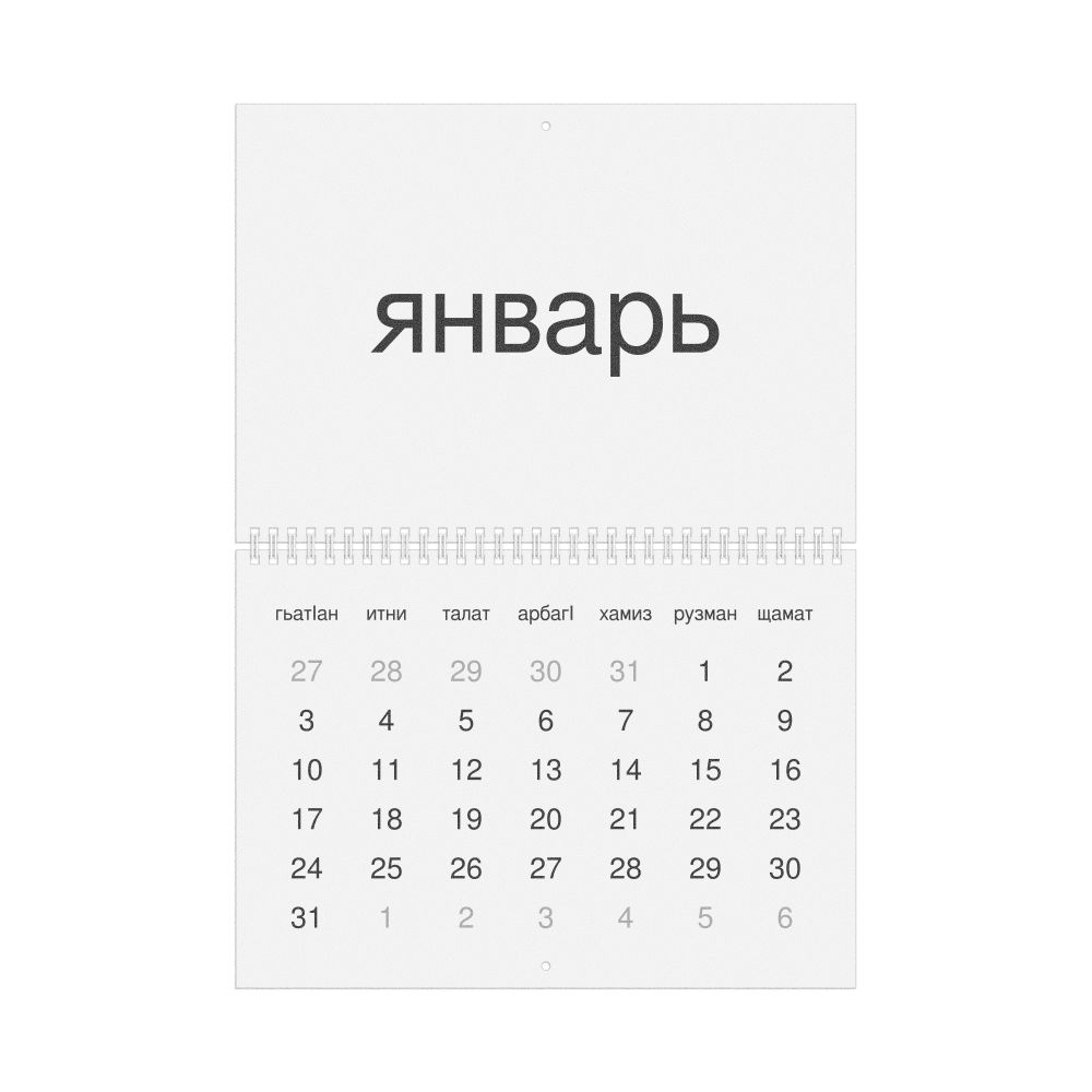 • Linguistics enthusiasts and polyglots - For "language geeks" interested in comparative linguistics or the mechanics of different languages and who value the aesthetic differences in scripts, orthography, and typography of different languages, the Avar calendar serves as an object of intellectual interest. You can collect calendars for various languages to compare their linguistic roots (e.g., comparing Romance languages vs. Slavic languages). Leskoff's calendars are characterized by specific typographic choices that highlight the orthography and script unique to the target language. Think correct usage of diacritics, characters, and directional writing (left-to-right vs. right-to-left). The minimalist design focuses on legibility and aesthetic appeal of the script itself.