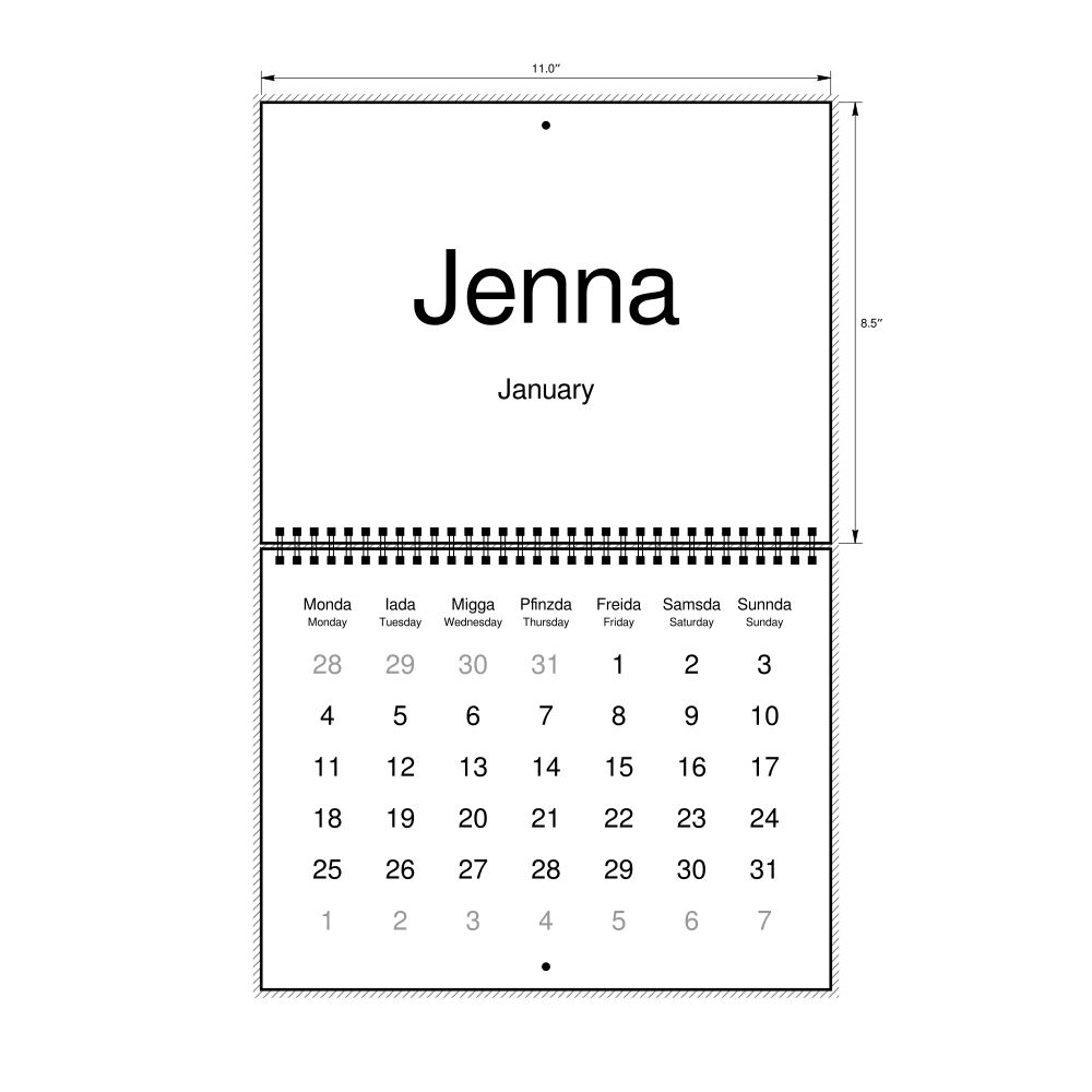 2027 Wall Calendar, Bavarian-Labeled, Sunday-Start Layout, Wire-Bound, 11 x 8.5 in (27.9 x 21.6 cm)