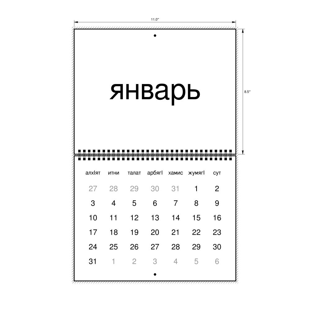 - Linguistics enthusiasts and polyglots - For "language geeks" interested in comparative linguistics or the mechanics of different languages and who value the aesthetic differences in scripts, orthography, and typography of different languages, the Dargin calendar serves as an object of intellectual interest. You can collect calendars for various languages to compare their linguistic roots (e.g., comparing Romance languages vs. Slavic languages). Leskoff's calendars are characterized by specific typographic choices that highlight the orthography and script unique to the target language. Think correct usage of diacritics, characters, and directional writing (left-to-right vs. right-to-left). The minimalist design focuses on legibility and aesthetic appeal of the script itself.