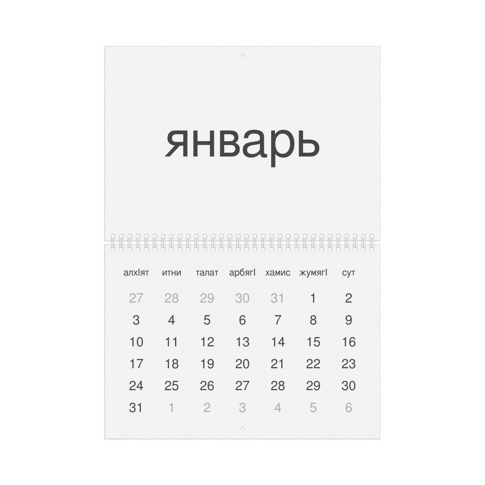 • Linguistics enthusiasts and polyglots - For "language geeks" interested in comparative linguistics or the mechanics of different languages and who value the aesthetic differences in scripts, orthography, and typography of different languages, the Dargin calendar serves as an object of intellectual interest. You can collect calendars for various languages to compare their linguistic roots (e.g., comparing Romance languages vs. Slavic languages). Leskoff's calendars are characterized by specific typographic choices that highlight the orthography and script unique to the target language. Think correct usage of diacritics, characters, and directional writing (left-to-right vs. right-to-left). The minimalist design focuses on legibility and aesthetic appeal of the script itself.