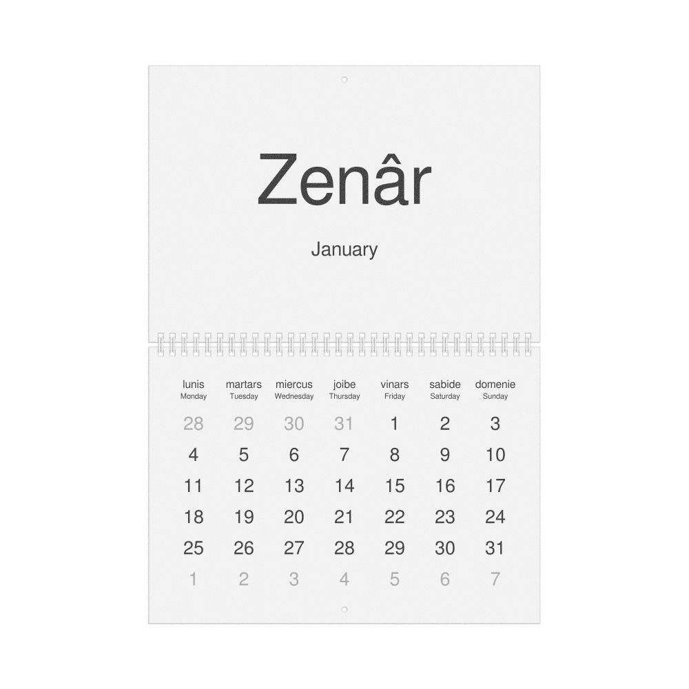 2026 Wall Calendar, Friulian/English-Labeled, Monday-Start Layout, Wire-Bound, 11.7 x 8.3 in (29.7 x 21.0 cm)