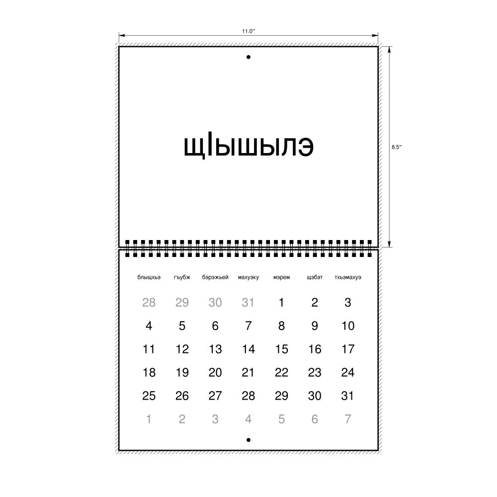 • Kabardian language learners and students - For individuals currently studying Kabardian, this calendar acts as a tool for passive learning and vocabulary reinforcement. It integrates essential Kabardian vocabulary into a daily visual environment and promotes retention through passive immersion and spaced repetition. Place it above a desk or study area to support immersion techniques.