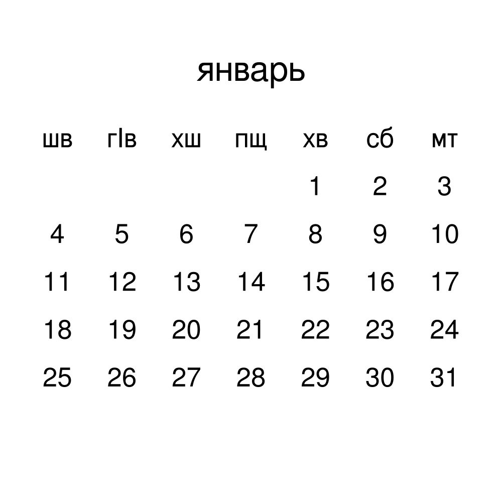 • Linguistics enthusiasts and polyglots - For "language geeks" interested in comparative linguistics or the mechanics of different languages and who value the aesthetic differences in scripts, orthography, and typography of different languages, the Abaza calendar serves as an object of intellectual interest. You can collect calendars for various languages to compare their linguistic roots (e.g., comparing Romance languages vs. Slavic languages). Leskoff's calendars are characterized by specific typographic choices that highlight the orthography and script unique to the target language. Think correct usage of diacritics, characters, and directional writing (left-to-right vs. right-to-left). The minimalist design focuses on legibility and aesthetic appeal of the script itself.