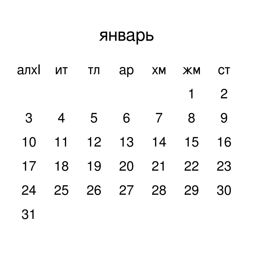 • Linguistics enthusiasts and polyglots - For "language geeks" interested in comparative linguistics or the mechanics of different languages and who value the aesthetic differences in scripts, orthography, and typography of different languages, the Dargin calendar serves as an object of intellectual interest. You can collect calendars for various languages to compare their linguistic roots (e.g., comparing Romance languages vs. Slavic languages). Leskoff's calendars are characterized by specific typographic choices that highlight the orthography and script unique to the target language. Think correct usage of diacritics, characters, and directional writing (left-to-right vs. right-to-left). The minimalist design focuses on legibility and aesthetic appeal of the script itself.