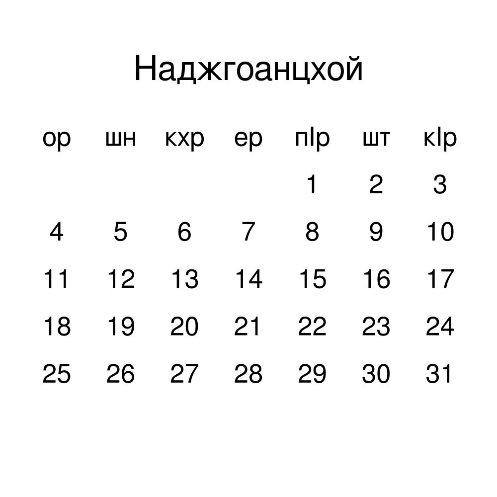 - Ingush heritage speakers and cultural connectors - For individuals seeking to maintain a connection to their history, ancestral roots, or the culture associated with the Ingush language, the calendar serves as a daily cultural marker. Use it in your home, office, library, or museum as a link to linguistic and cultural identity that integrates Ingush into your everyday life. Familiar language script and naming conventions may also provide a sense of home in a foreign environment.