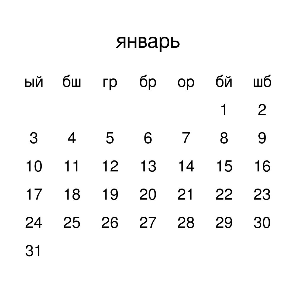- Linguistics enthusiasts and polyglots - For "language geeks" interested in comparative linguistics or the mechanics of different languages and who value the aesthetic differences in scripts, orthography, and typography of different languages, the Karachay–Balkar calendar serves as an object of intellectual interest. You can collect calendars for various languages to compare their linguistic roots (e.g., comparing Romance languages vs. Slavic languages). Leskoff's calendars are characterized by specific typographic choices that highlight the orthography and script unique to the target language. Think correct usage of diacritics, characters, and directional writing (left-to-right vs. right-to-left). The minimalist design focuses on legibility and aesthetic appeal of the script itself.
