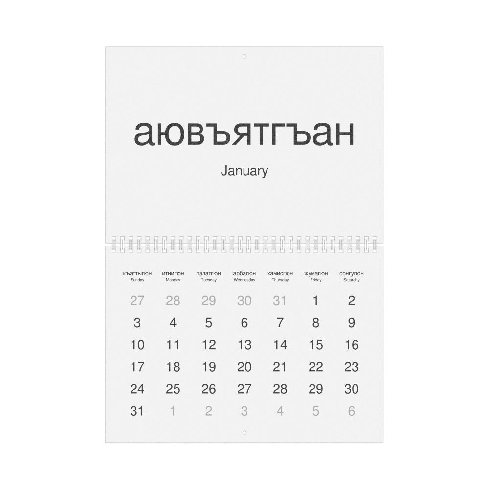 2027 Wall Calendar, Kumyk-Labeled, Sunday-Start Layout, Poster / Wall Print, 23.4 x 33.1 in (59.4 x 84.1 cm)