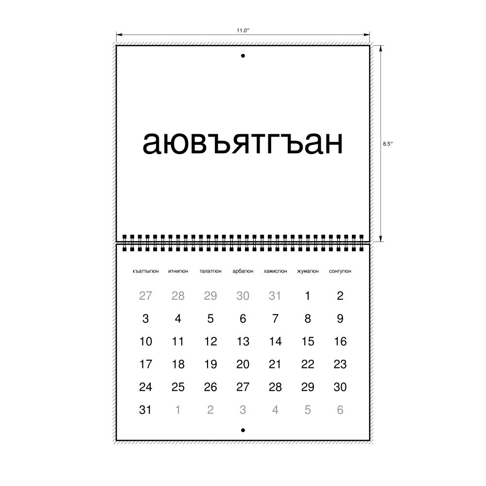 • Linguistics enthusiasts and polyglots - For "language geeks" interested in comparative linguistics or the mechanics of different languages and who value the aesthetic differences in scripts, orthography, and typography of different languages, the Kumyk calendar serves as an object of intellectual interest. You can collect calendars for various languages to compare their linguistic roots (e.g., comparing Romance languages vs. Slavic languages). Leskoff's calendars are characterized by specific typographic choices that highlight the orthography and script unique to the target language. Think correct usage of diacritics, characters, and directional writing (left-to-right vs. right-to-left). The minimalist design focuses on legibility and aesthetic appeal of the script itself.