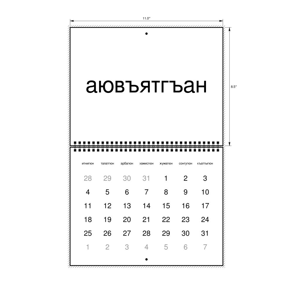 • Linguistics enthusiasts and polyglots - For "language geeks" interested in comparative linguistics or the mechanics of different languages and who value the aesthetic differences in scripts, orthography, and typography of different languages, the Kumyk calendar serves as an object of intellectual interest. You can collect calendars for various languages to compare their linguistic roots (e.g., comparing Romance languages vs. Slavic languages). Leskoff's calendars are characterized by specific typographic choices that highlight the orthography and script unique to the target language. Think correct usage of diacritics, characters, and directional writing (left-to-right vs. right-to-left). The minimalist design focuses on legibility and aesthetic appeal of the script itself.