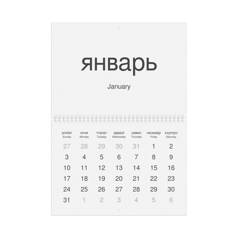 A Lak-language wall calendar (2027, Sunday-start format) with English translations.