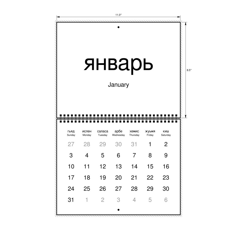 2027 Wall CalendarLezgian/English-Labeled, Sunday-Start Layout, Wire-Bound, 11 x 8.5 in (27.9 x 21.6 cm)