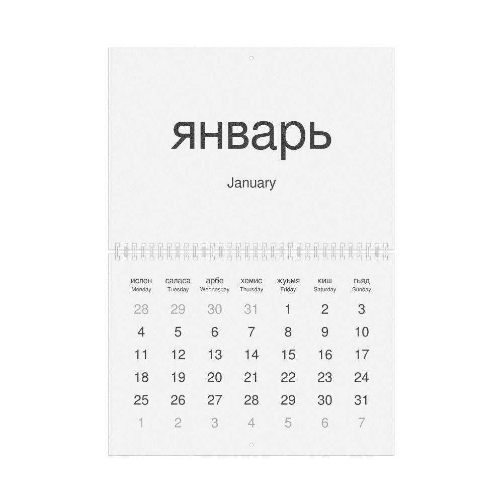 2026 Wall Calendar, Lezgian-Labeled, Monday-Start Layout, Wire-Bound, 11.7 x 8.3 in (29.7 x 21.0 cm)