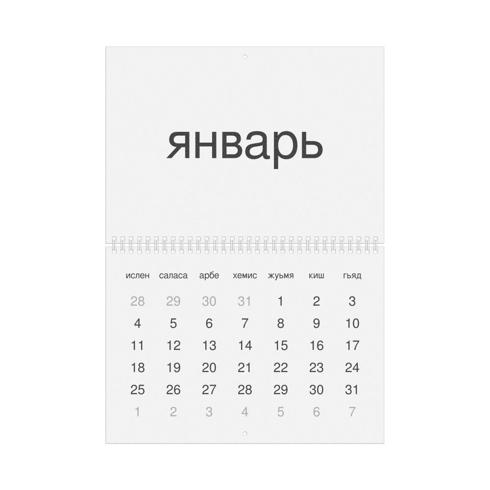 - Linguistics enthusiasts and polyglots - For "language geeks" interested in comparative linguistics or the mechanics of different languages and who value the aesthetic differences in scripts, orthography, and typography of different languages, the Lezgian calendar serves as an object of intellectual interest. You can collect calendars for various languages to compare their linguistic roots (e.g., comparing Romance languages vs. Slavic languages). Leskoff's calendars are characterized by specific typographic choices that highlight the orthography and script unique to the target language. Think correct usage of diacritics, characters, and directional writing (left-to-right vs. right-to-left). The minimalist design focuses on legibility and aesthetic appeal of the script itself.