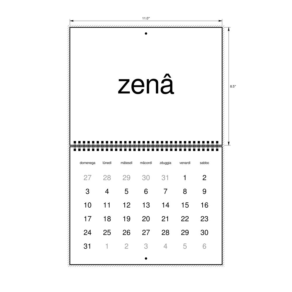 - Ligurian heritage speakers and cultural connectors - For individuals seeking to maintain a connection to their history, ancestral roots, or the culture associated with the Ligurian language, the calendar serves as a daily cultural marker. Use it in your home, office, library, or museum as a link to linguistic and cultural identity that integrates Ligurian into your everyday life. Familiar language script and naming conventions may also provide a sense of home in a foreign environment.