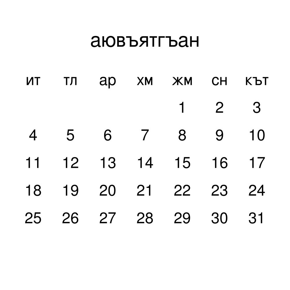- Kumyk heritage speakers and cultural connectors - For individuals seeking to maintain a connection to their history, ancestral roots, or the culture associated with the Kumyk language, the calendar serves as a daily cultural marker. Use it in your home, office, library, or museum as a link to linguistic and cultural identity that integrates Kumyk into your everyday life. Familiar language script and naming conventions may also provide a sense of home in a foreign environment.