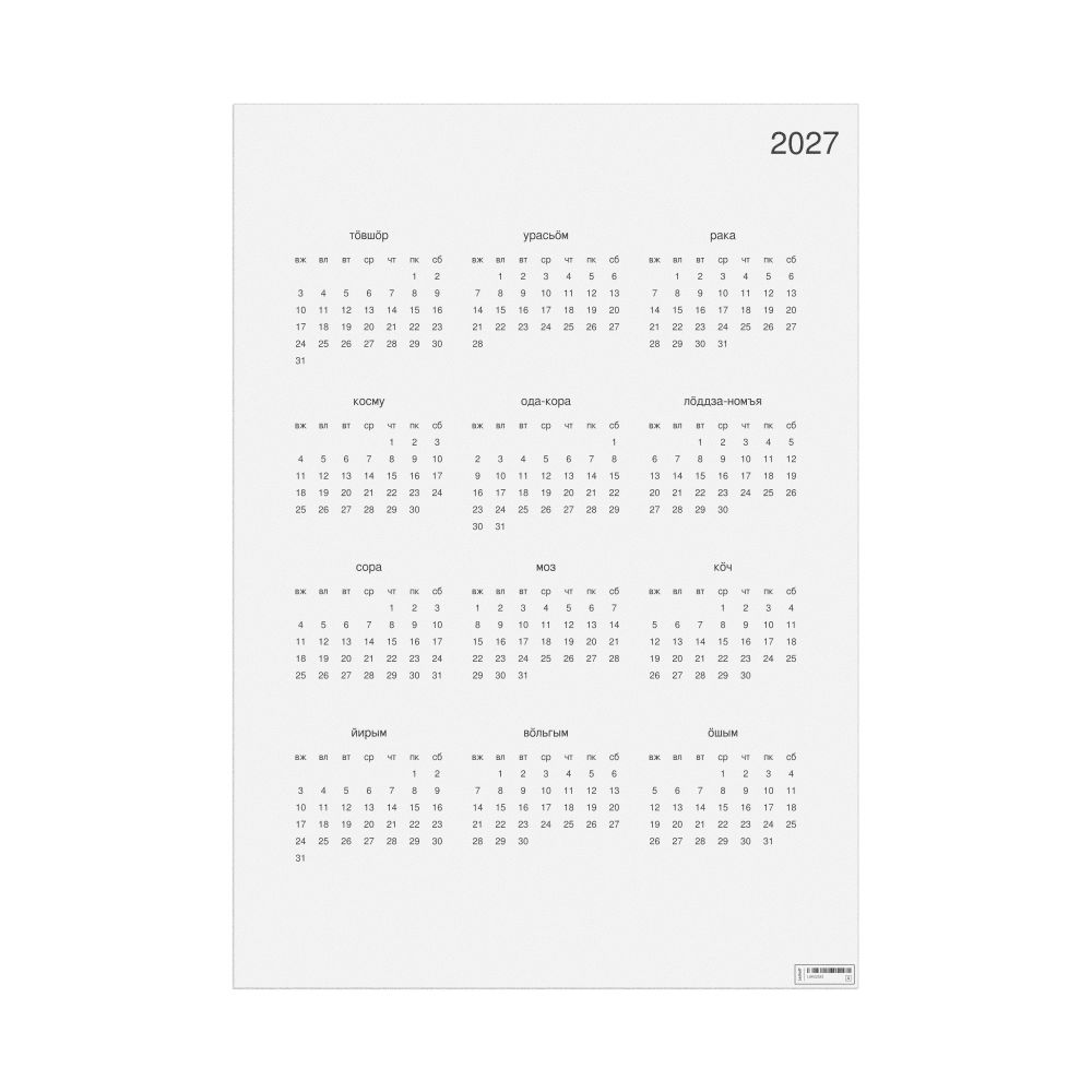 - Linguistics enthusiasts and polyglots - For "language geeks" interested in comparative linguistics or the mechanics of different languages and who value the aesthetic differences in scripts, orthography, and typography of different languages, the Komi calendar serves as an object of intellectual interest. You can collect calendars for various languages to compare their linguistic roots (e.g., comparing Romance languages vs. Slavic languages). Leskoff's calendars are characterized by specific typographic choices that highlight the orthography and script unique to the target language. Think correct usage of diacritics, characters, and directional writing (left-to-right vs. right-to-left). The minimalist design focuses on legibility and aesthetic appeal of the script itself.