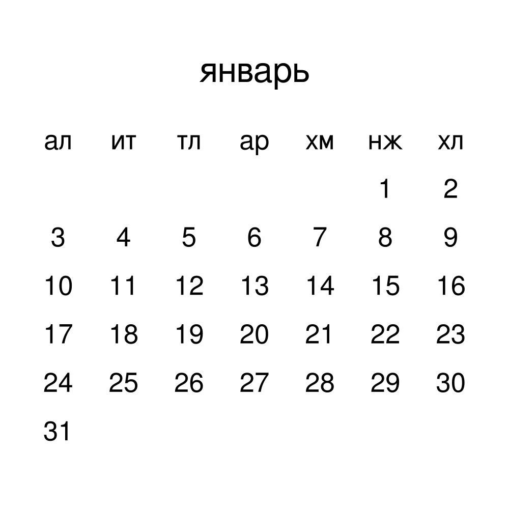 • Linguistics enthusiasts and polyglots - For "language geeks" interested in comparative linguistics or the mechanics of different languages and who value the aesthetic differences in scripts, orthography, and typography of different languages, the Lak calendar serves as an object of intellectual interest. You can collect calendars for various languages to compare their linguistic roots (e.g., comparing Romance languages vs. Slavic languages). Leskoff's calendars are characterized by specific typographic choices that highlight the orthography and script unique to the target language. Think correct usage of diacritics, characters, and directional writing (left-to-right vs. right-to-left). The minimalist design focuses on legibility and aesthetic appeal of the script itself.