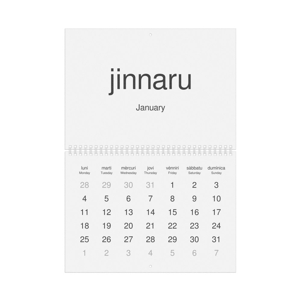 2027 Wall Calendar, Sicilian/English-Labeled, Sunday-Start Layout, Wire-Bound, 11.7 x 8.3 in (29.7 x 21.0 cm)