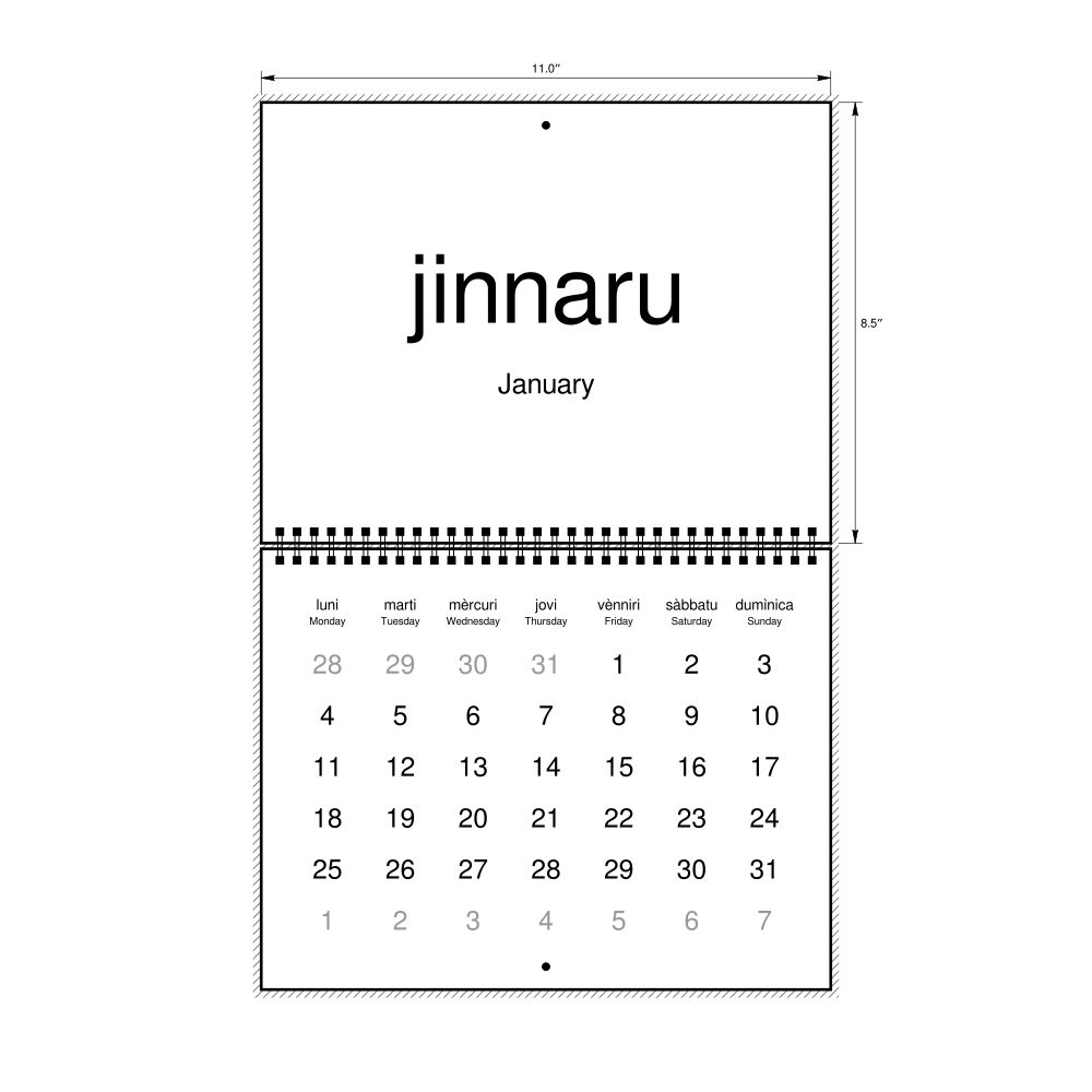 2027 Wall CalendarSicilian/English-Labeled, Monday-Start Layout, Wire-Bound, 11 x 8.5 in (27.9 x 21.6 cm)