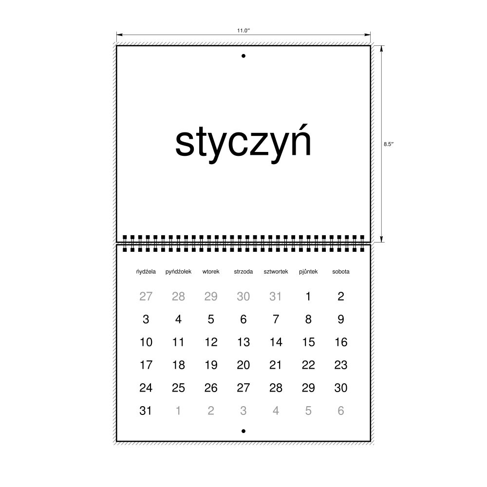 • Linguistics enthusiasts and polyglots - For "language geeks" interested in comparative linguistics or the mechanics of different languages and who value the aesthetic differences in scripts, orthography, and typography of different languages, the Silesian calendar serves as an object of intellectual interest. You can collect calendars for various languages to compare their linguistic roots (e.g., comparing Romance languages vs. Slavic languages). Leskoff's calendars are characterized by specific typographic choices that highlight the orthography and script unique to the target language. Think correct usage of diacritics, characters, and directional writing (left-to-right vs. right-to-left). The minimalist design focuses on legibility and aesthetic appeal of the script itself.