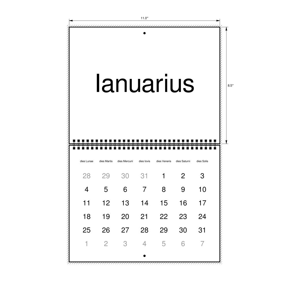 • Polyglots and autodidacts - For "language geeks" interested in the origins of different languages, classical literature, and scholarly pursuits and who value the typographic and aesthetic details of historical languages, the Latin calendar serves as an object of intellectual interest. You can collect calendars for various languages to compare their linguistic roots. The minimalist design focuses on legibility and aesthetic appeal of the historic and reconstructed words themselves.