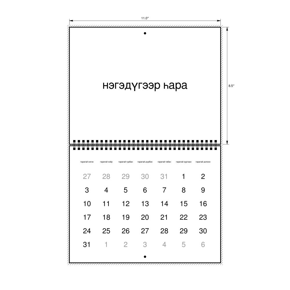 2027 Wall Calendar, Buryat-Labeled, Sunday-Start Layout, Wire-Bound, 11 x 8.5 in (27.9 x 21.6 cm)