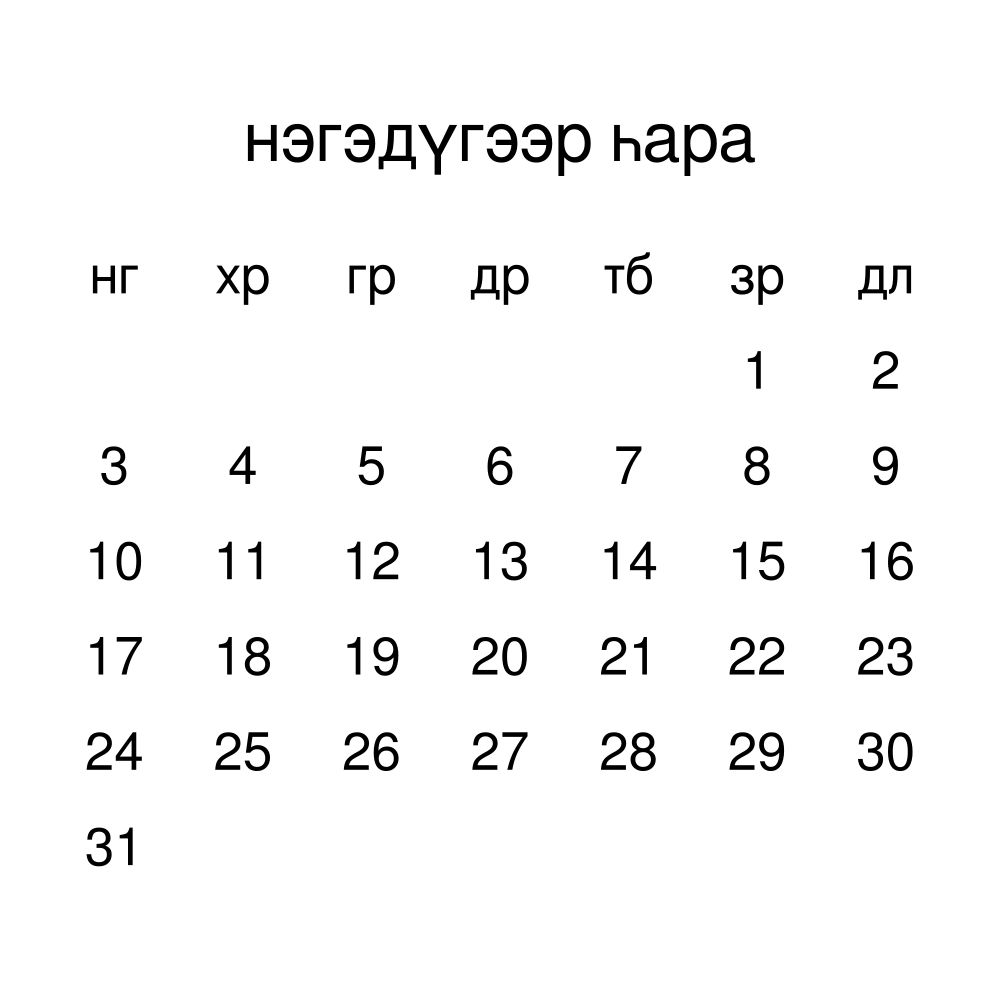 - Buryat heritage speakers and cultural connectors - For individuals seeking to maintain a connection to their history, ancestral roots, or the culture associated with the Buryat language, the calendar serves as a daily cultural marker. Use it in your home, office, library, or museum as a link to linguistic and cultural identity that integrates Buryat into your everyday life. Familiar language script and naming conventions may also provide a sense of home in a foreign environment.