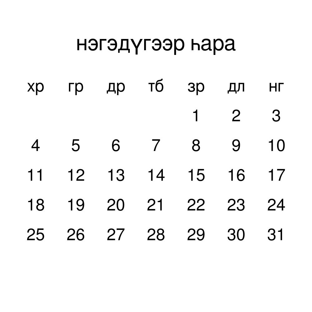 - Buryat heritage speakers and cultural connectors - For individuals seeking to maintain a connection to their history, ancestral roots, or the culture associated with the Buryat language, the calendar serves as a daily cultural marker. Use it in your home, office, library, or museum as a link to linguistic and cultural identity that integrates Buryat into your everyday life. Familiar language script and naming conventions may also provide a sense of home in a foreign environment.