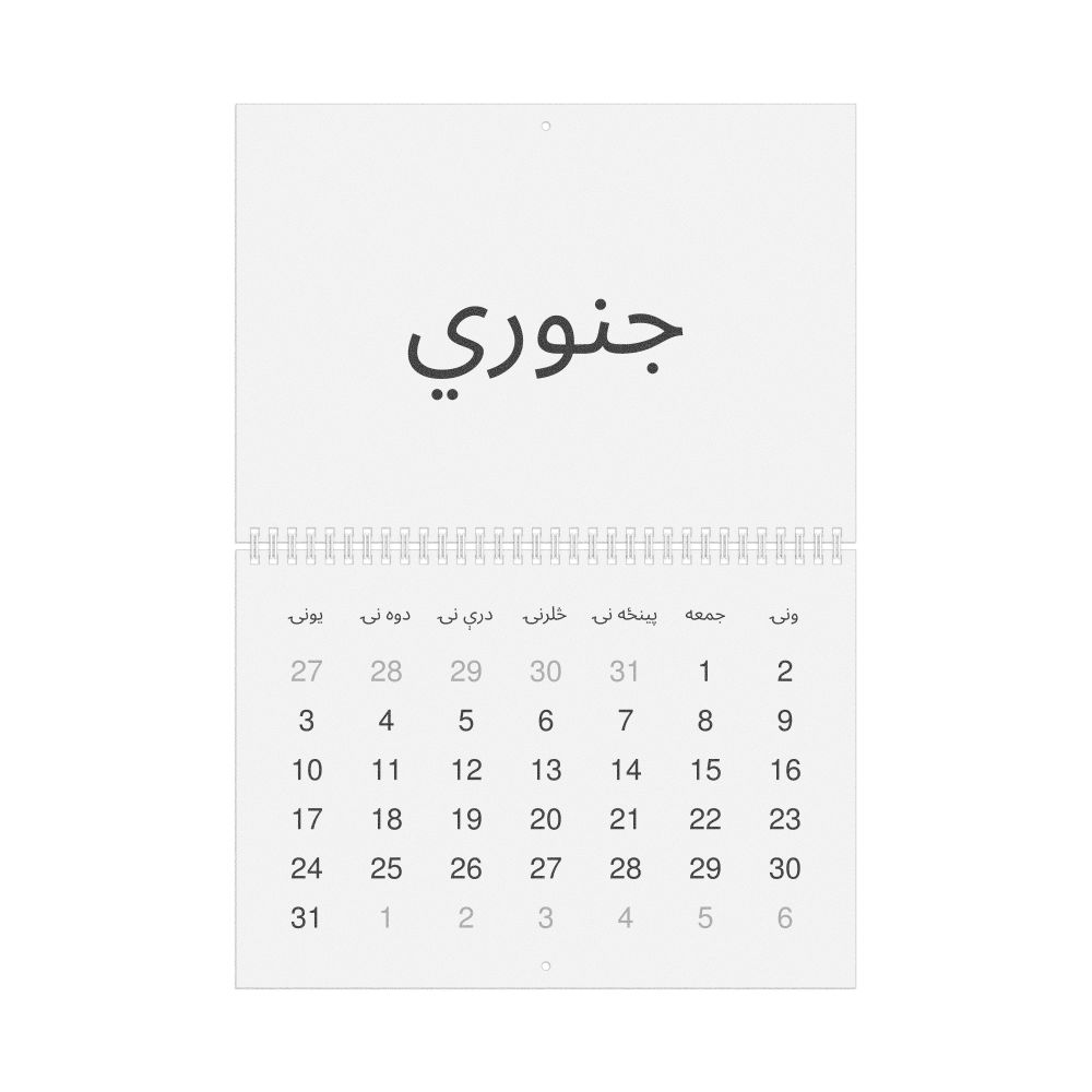 - Pashto heritage speakers and cultural connectors - For individuals seeking to maintain a connection to their history, ancestral roots, or the culture associated with the Pashto language, the calendar serves as a daily cultural marker. Use it in your home, office, library, or museum as a link to linguistic and cultural identity that integrates Pashto into your everyday life. Familiar language script and naming conventions may also provide a sense of home in a foreign environment.