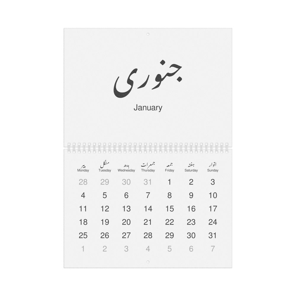 2027 Wall Calendar, Urdu-Labeled, Monday-Start Layout, Wire-Bound, 11.7 x 8.3 in (29.7 x 21.0 cm)