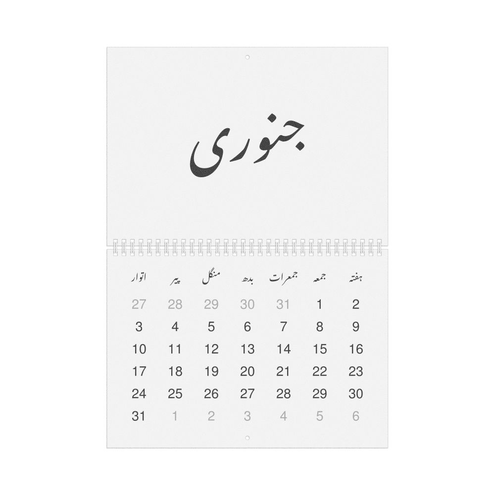 - Urdu heritage speakers and cultural connectors - For individuals seeking to maintain a connection to their history, ancestral roots, or the culture associated with the Urdu language, the calendar serves as a daily cultural marker. Use it in your home, office, library, or museum as a link to linguistic and cultural identity that integrates Urdu into your everyday life. Familiar language script and naming conventions may also provide a sense of home in a foreign environment.